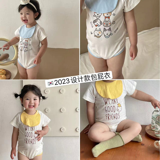 【Promesa】100% Cotton Cute Pattern Romper With Bibs