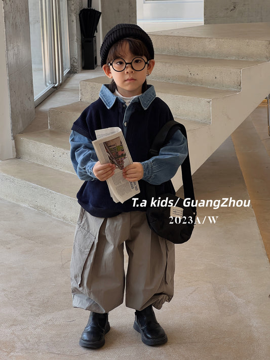 【Promesa】Unisex Faux Two Pieces Campus Style Top