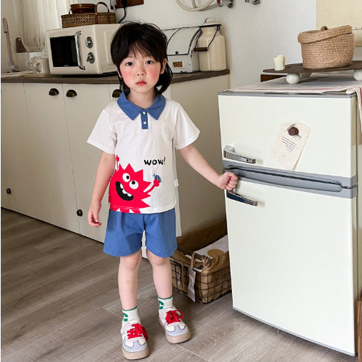 【Promesa】100% Cotton Collar Short Sleeves Short Pants Set wear