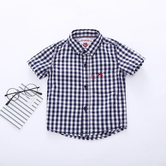Retro Style Boy Checker Collar Shirt