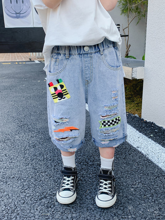 2022 Kids Doggy Printed Denim Shorts