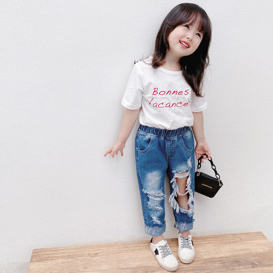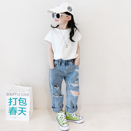 Out of stock儿童夏款日系破洞水洗牛仔裤 Kid Summer Ripped Jeans